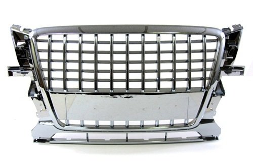09-11 Audi Q5 Pre Facelift without PDC S-Line Style Front Grille ALL Chrome 10?This Brand New S-Line Style Front Grille with ALL CHROME is perfect for Audi Q5 owner to convert their Q5 to the Sporty Luxury look, which can stand out from other Audi Q5. Since the grille is direct replacement of the stock OEM grille, buyer can refer to the instruction from dealer how to remove and replace stock grille. Emblem Holder is included. This front grille can be installed with or without the emblem holder.