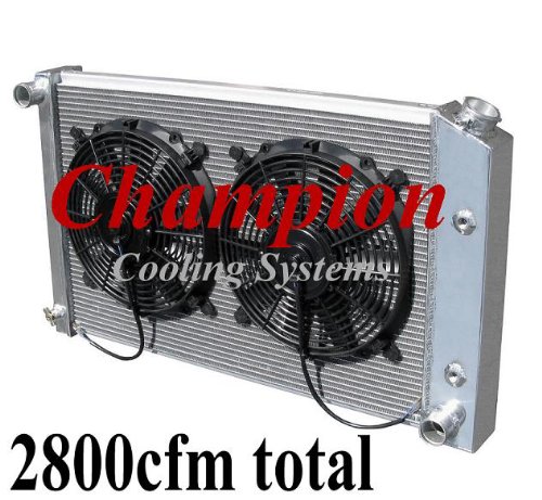 4 Row All Aluminum Replacement Radiator AND 12" Dual Fans for the 1970-1981 Pontiac Firebird / Trans AM, (Engine Size Specifics: 1970-76 -350ci V8/ 1977 -350ci V8, 400ci V8, 403ci V8/ 1978 -400ci V8, 403ci V8/ 1979 -305ci V8/ 1980 -301ci, 305ci V8/ 1981 -267ci V8, 301ci V8, 305ci V8- Manufactured by Champion Cooling Systems, Part Number: MC477FAN, shop online, read product reviews,