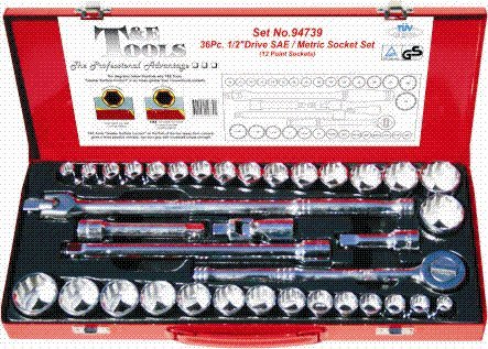 T & E Tools 1/2" Drive 36Pc. Combination Socket Set [6 Point]